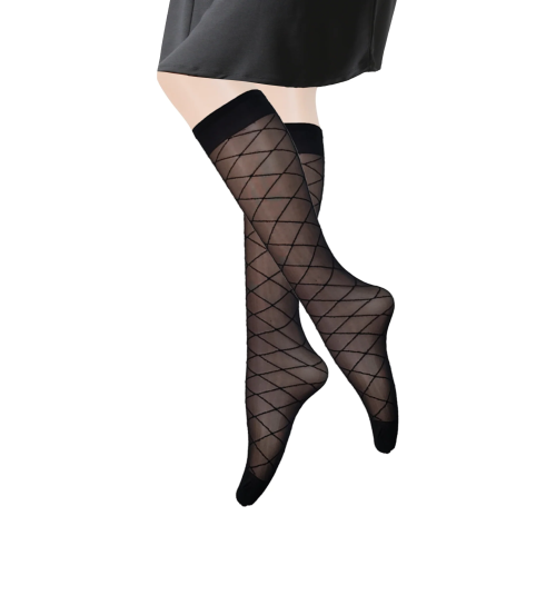 Fashion Mystery Style, Ultra Sheer 20 Den Patterned KneeHigh